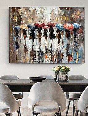 arte de parede de árvore feita à mão pintura colorida da cidade tela feita à mão tela colorida citywalk pintura um encontro com a chuva pintura em tela tela enorme decoração para casa tela de outono