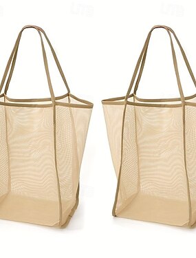 Conjunto de 2 bolsas de praia grandes em tela, feitas de poliéster com alças resistentes, ideais para viagens, praia, férias, piscina e camping.
