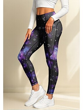 Mulheres leggings de pilates Calças de fitness Leggings de Ginástica Bolsos Imposto de selo Bolsos laterais Pilates Academia Treino de Ginástica Calças Meia-calça Leggings Estampa de Galáxia Roxo