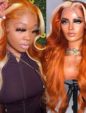 Cabelo humano 13x4 onda corporal laranja gengibre perucas dianteiras de renda 12-28 inch150% densidade com cabelo de bebê para mulheres negras peruca frontal de renda
