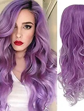 Perucas cosplay Loiro Roxo Côr Misturada Encaracolado Cabelo Sintético Longo perucas Feminino perucas Para festa