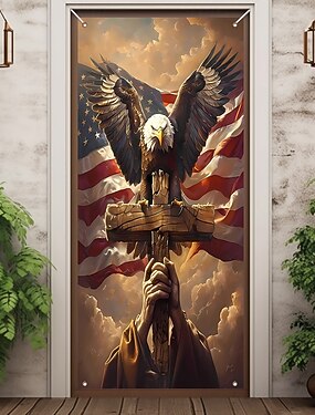 Bandeira patriótica para porta, Dia da Independência, com a bandeira americana, águia-careca e cruz, decoração religiosa para pendurar na parede, placa para varanda, Dia da Independência.