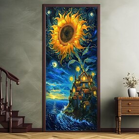 Capas de porta estilo pintura a óleo de girassol porta tapeçaria porta cortina decoração pano de fundo banner de porta para porta da frente fazenda feriado festa decoração suprimentos