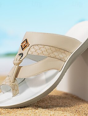 Sandálias masculinas brancas de dedo, estilo chinelo casual com tira ajustável, confortáveis para o verão, ideais para férias na praia, resorts, piscina, viagens, uso em casa, lazer ao ar livre e para o dia a dia.