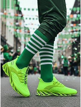 Tênis de corrida masculino verde neon respirável, calçado esportivo leve com sola de lâmina, tênis esportivo estiloso para caminhada, academia, uso diário e looks para o Dia de São Patrício.