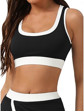 Mulheres Bloco de cor Tanque Sutiã de tênis Sutiã Esportivo Sem Manga Patchwork Secagem Rápida Resistente ao Choque Pavio Humido Respirável Tênis Pickleball Corrida Scoop pescoço Blusas Preto