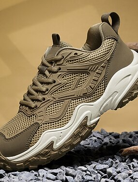 Tênis masculino bege para caminhada ao ar livre - calçado esportivo leve e respirável com sola durável para viagens de trekking e aventuras diárias ao ar livre