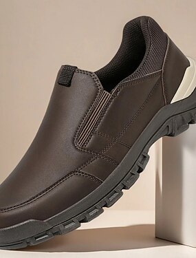 tênis masculino marrom de couro sintético slip-on – calçados casuais modernos para uso diário confortável