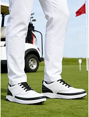 Tênis de golfe masculino branco, com palmilha acolchoada, sola antiderrapante durável, estiloso e confortável para o campo de golfe e treino.