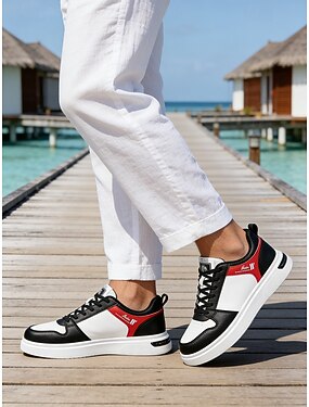Homens Tênis Sapatos de Natal Forro de Lã Caminhada Casual Pele PU Confortável Antiderrapante Respirável Botas / Botins Com Cadarço Preto Vermelho Verão Primavera Outono