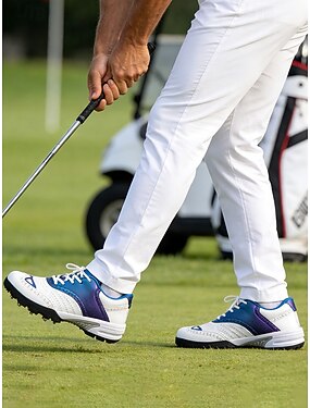 Tênis de golfe masculino – cabedal em couro sintético respirável, sola com absorção de impacto, conforto ergonômico para homens, perfeito para golfe, esportes casuais ao ar livre e atividades em resorts.