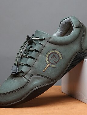Tênis casual masculino verde escuro com cadarço, leve e confortável para caminhada, calçado macio e elegante para uso diário, viagens, dirigir e lazer.