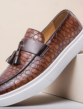 mocassins masculinos com padrão de crocodilo marrom e borlas – sapatos sociais de luxo para negócios, festas noturnas e ocasiões formais