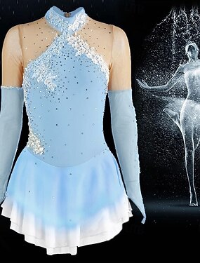 Vestidos para Patinação Artística Mulheres Para Meninas Patinação no Gelo Vestidos Azul Lago Thumbhole Detalhes e Estampas Elasticidade Alta Profissional Competição Roupa para Patinação Térmico