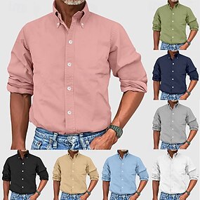 Blusa feminina 100% algodão, camisa com botões, cor lisa, elegante, básica, casual, manga longa, gola, blusas de tamanho padrão, para uso diário, nas cores azul, branca, amarela, rosa e verde, para primavera e outono.