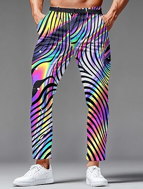 Carnaval Homens Arco-Íris Cor deslumbrante Carnaval Calças Social Calças de Terno Cintura Média Moda Casual Feriado Calças Slim Fit com Bolsos Primavera Outono Impressão 3D Roxo Verde