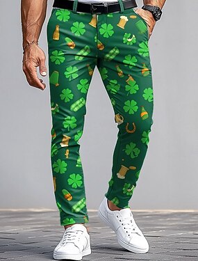 Dia de São Patrício Calças Masculinas Trevo Quatro Folhas Graduadas Coloridas Calças de Vestido Calças de Terno Meio Cintura Vintage Retro Férias Calças Slim Fit com Bolsos Verão Primavera Impressão