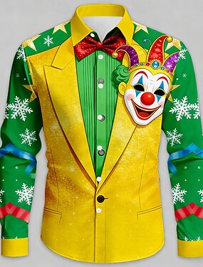 Carnaval Homens Purpurina Brilhante Carnaval Design de gola falsa e terno Camisa Social camisa de botão Manga Longa Moda Casual Festa Feriado Primavera Outono Aberto para a Lateral Impressão 3D