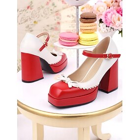 Sapatos Mary Jane chunky de salto alto azul claro e branco com detalhe de laço, estilo lolita vintage dos anos 1950, ideais para adolescentes e jovens adultos, ideais para looks diários e encontros casuais