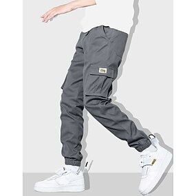 Homens Calças Cargo Calças Esportivas Corredor Calças Calça de moletom cargo Perna larga Côr Sólida Comprimento total Esportes Diário Clássico Casual Ajuste Largo Preto Branco