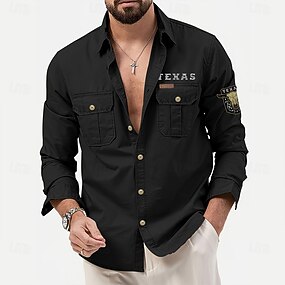 Homens Texas Cow Print Camisas de trabalho camisa ocidental Camisa de carga Manga Longa Casual Tático Desportos e Ar livre Para Noite Inverno Primavera & Outono Aberto para a Lateral Imprimir Preto