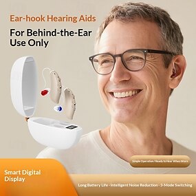 Aparelhos auditivos digitais para idosos, amplificador de som retroauricular para aprimoramento auditivo pessoal, amplificador auditivo digital recarregável com bateria para o dia todo.