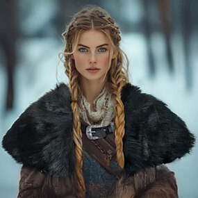 Retro Vintage Medieval Renascentista Capa Xales Fantasia de pele sintética Guerreiro Viking Fantasia Mulheres Viking Dia Das Bruxas Carnaval Espetáculo Festa LARP Adulto Xale