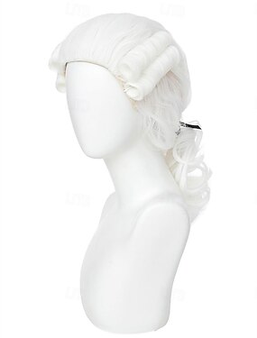 Peruca colonial de juiz para fantasias masculinas e femininas (branca)