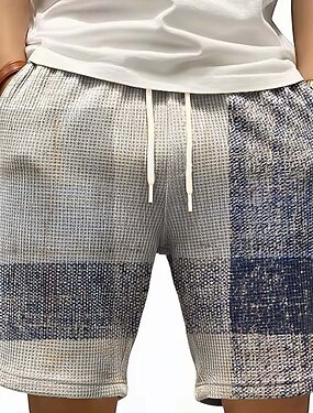 Homens Geométrica Bloco de cor Calções Waffle Shorts de moletom Shorts casuais Cintura Média Moda Casual Férias Corrida Dar certo Textura Cintura elástica com cordão Shorts com bolsos Designer Roupa