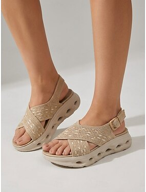 Sandálias esportivas femininas com suporte para o arco do pé – sandálias plataforma de malha respirável com tira ajustável, calçados leves e acolchoados para caminhadas, viagens e atividades ao ar