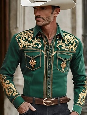 Homens Estampado Cashemere Estampa floral Flores Camisa Social camisa ocidental Camisa de caubói Manga Longa Vintage retrô Casual Ao ar livre Roupa de Trabalho Primavera Outono Aberto para a Lateral