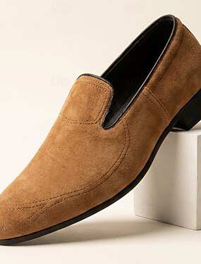 Mocassins masculinos de camurça, bico fino, salto baixo, elegantes e confortáveis, ideais para o escritório, festas noturnas, banquetes e ocasiões formais.