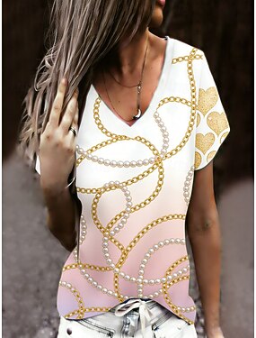 Dia dos Namorados Mulheres Camiseta T-shirt Imprimir Coração Gráfico à moda Clássico Casual Manga Curta Decote V Tops regulares Diário Para Noite Final de semana Rosa Rosa cor de Rosa Verão Primavera