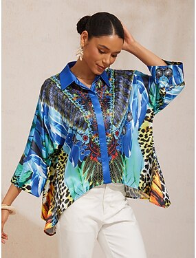 Camisa de manga dolmã em cetim sedoso para festa selvagem na selva