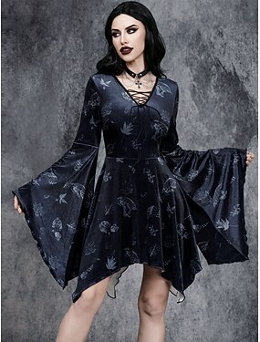 Góticas Mini Vestidos Sino Bruxa Veludo Bainha assimétrica Fantasia Mulheres Fantasia Dia Das Bruxas Carnaval Espetáculo Festa Adulto Vestido