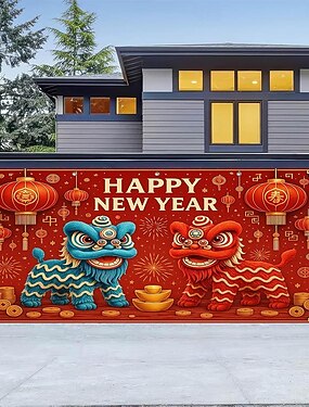 Ano Novo tapeçaria Tampa da porta da garagem Grande pendurado Praia 2026 Férias 3D Engraçado De Festa Exterior Férias Fundos de fotografia Jarda Decoração de casa
