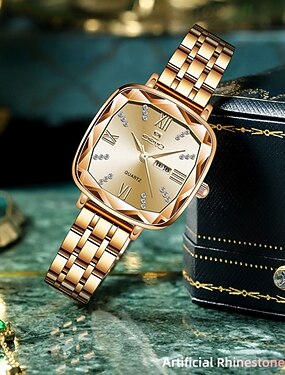 Feminino Relógio de Pulso Bling Com Strass Calendário Encontro Decoração Aço Inoxidável Assista
