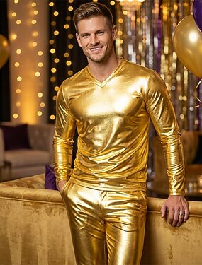Retro Vintage Anos 80 Japonesa/Curta Moletom Discoteca Patente de látex brilhante Metálico Fantasia Homens Dia Das Bruxas Carnaval Parada do Orgulho Mês do Orgulho Adulto Camisa
