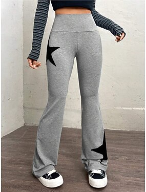 Mulheres leggings flare Férias Moda Roupa de rua Comprimento total Cintura Alta Estrela Cintura elástica Estampado Confortável Conforto Macio Com Stretch Ao ar livre Rua Cinzento Claro Preto Roxo