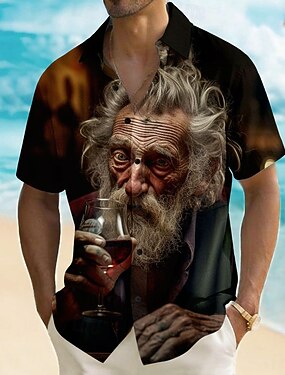 Homens Engraçado Cerveja Velhote Camisa Social camisa de verão camisa de botão Manga Curta Vintage retrô Ao ar livre férias na praia Verão Primavera Aberto para a Lateral Impressão 3D Camisa tipo