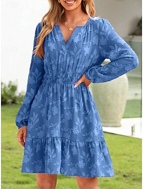 Mulheres Minivestido Vestido A Line Casual Ao ar livre Para Noite Padrão Floral Manga Longa Decote V Azul Branco Rosa Damasco Verão Primavera
