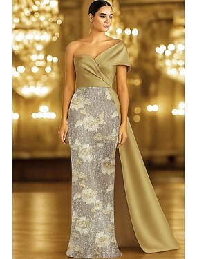 Linha A Sereia Longo Bordado com miçangas Vestido formal Vestido para a mãe da noiva Vestidos de noite Vestido de baile com sobressaia Vestido formal Elegante Brilhante Sem Manga Ombro a Ombro
