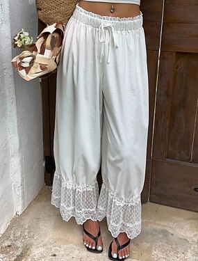 Mulheres Calças Calça verão Calças de praia Férias Moda Casual Diário Comprimento total Cintura Alta Côr Sólida Tecido Com Cordão Renda Perna larga Conforto Secagem Rápida Macio Sem Elasticidade
