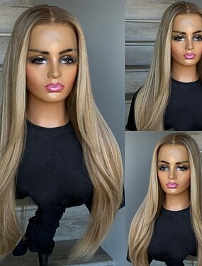Peruca brasileira 100% cabelo humano virgem com fecho 5x5, sem cola, lace frontal 13x4, cabelo humano ondulado com mechas loiras acinzentadas e baby hair, linha capilar natural, sem cola, para