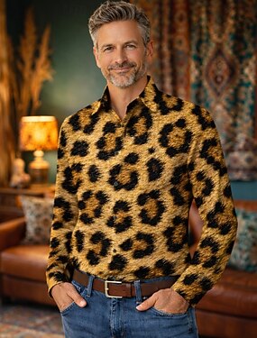 Retro Vintage Anos 70 Camisa Camisa Aloha Manga Comprida Hippie Leopardo Fantasia Homens Baile de Máscaras Festival de Música Festa Roupa Diária Adulto Camisa