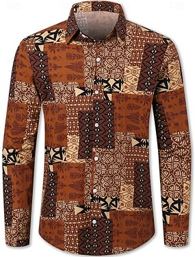 Retro Vintage Anos 70 Camisa Camisa Aloha Manga Comprida Hippie Psicodélico Fantasia Homens Baile de Máscaras Festival de Música Festa Roupa Diária Adulto Camisa