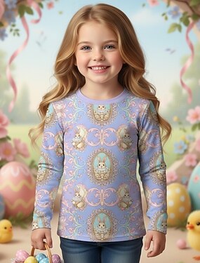 Camiseta infantil de Páscoa com estampa 3D de coelho, manga longa, estilo streetwear esportivo para primavera e outono, tamanhos 4 a 12 anos, gola redonda, modelagem regular, ideal para uso casual,