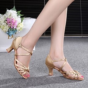 sapatos de dança femininos de cetim dourado com tiras, sapatos de salão abertos para apresentações de dança latina e salsa