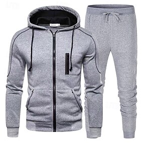 Homens Moletom Full Zip Hoodie Suéter Preto Vermelho Azul Marinha Azul Real Cinza Claro Com Capuz Bloco de cor 2 Peças Desportos e Ar livre Diário Feriado Poliéster Roupa de rua Básico Casual