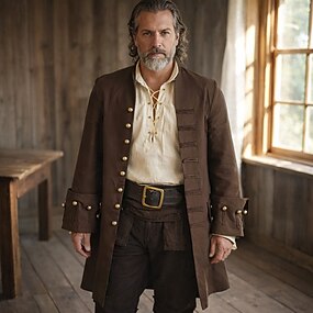 Medieval Renascentista Casaco Manga Comprida Pirata Ranger Fantasia Unisexo Pirata Dia Das Bruxas Carnaval feira renascentista LARP Adulto Casaco Todas as Estações
